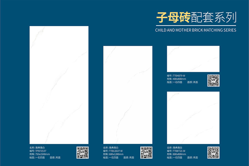 子母配套:TTB12637-W (600x1200mm)、TTB8T21-W(800x800mm)、TTB4879-W(400x800mm)
