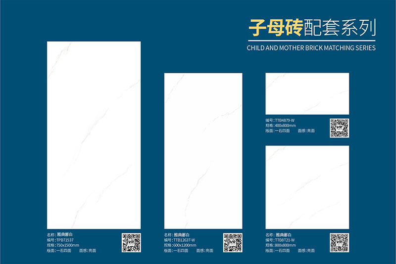 子母配套:TPB71537 (750x1500mm)、TTB12637-W (600x1200mm)、TTB8T21-W(800x800mm)